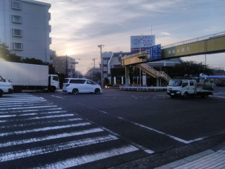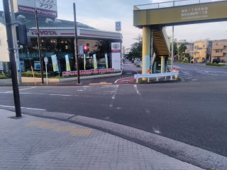 十字路を「ディリ―ヤマザキ」から交番に向かって横断歩道を渡ります。