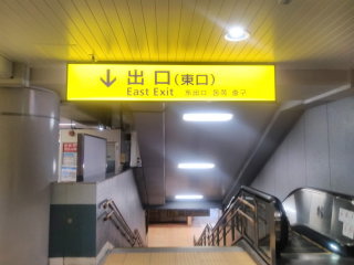出口(東口)の階段またはエスカレーターを降り右折します。