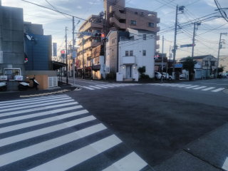 十字路を「ディリ―ヤマザキ」から交番に向かって横断歩道を渡ります。