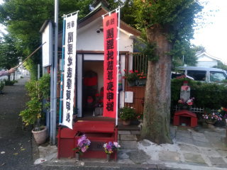 十字路の交番を右折し、直進します。左手に「お地蔵様」が見えてきます。
