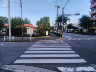 潮田公園(プール)に向かって横断歩道を渡り、直進します。
